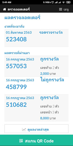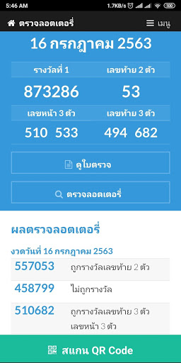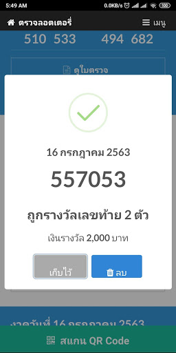 Thai lotteries, check lottery result with QR code