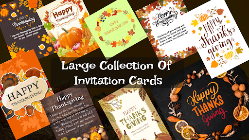 Thanksgiving invitation cards 2023 offer greeting card templates into invitation cards. You can also now customize your thanksgiving invitation cards for your thanksgiving dinner and place stickers and images of turkey dinner and thanksgiving side dishes to celebrate your thanksgiving holiday 2023 with your friends and family. With the turkey day invitation card maker you can customize the in-built cards templates with photo frames, messages and colorful stickers. You can also save and share your creation in a dedicated Album.