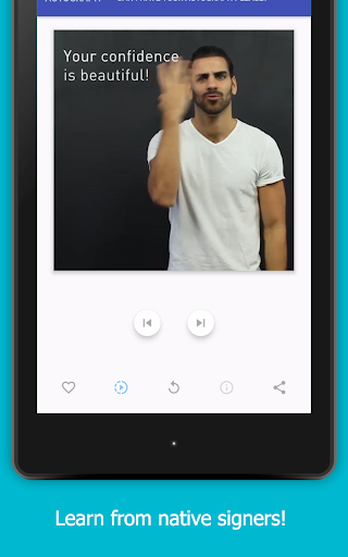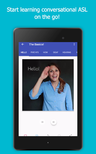 The ASL App is designed to help you learn a new visual, spatial language in a way that is easy, intuitive, and well paced. You can drag your finger on the videos to control the speed - totally at your pace. There is a search index (when you need to know a sign right away), slow-motion option, info (tips), and a favorites folder.