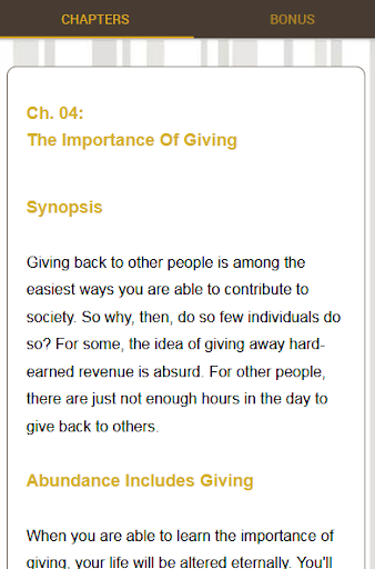 If you are interested in learning more about The Art of giving and the understanding what true abundance is, download this app today.