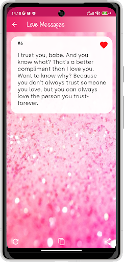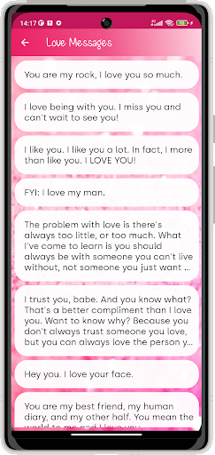 ♥ Love Messages is a nice android application. it contains collection of Special Love Messages - Love SMS Romantic Messages - Fall in Love Quotes and Propose Messages for your LOVE.