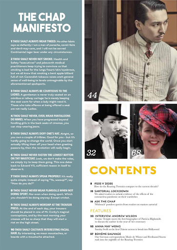 Whether you truly want to adopt the lifestyle of the dandy or the gentleman, or simply wish to keep yourself informed of the latest developments in cravat usage and pipe tobaccos, The Chap is the only British publication entirely devoted to celebrating the arts of the gentleman.