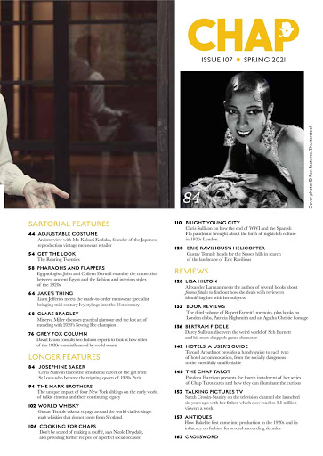 Readers are invited to send their photos in for a sartorial assessment and these are reproduced in the “Am I Chap?” section. Elsewhere, one may read interviews with notable living Chaps such as Chris Eubank, Sir Roger Moore, Adam Ant and Donald Sinden.