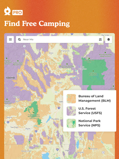 * PRO Free Camping Maps — Use Map Layers to see all free camping areas.