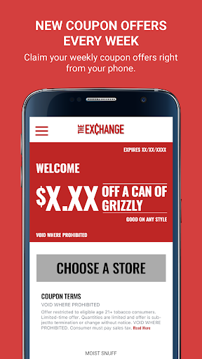 The Exchange application allows tobacco consumers age 21 to receive mobile coupon offers for tobacco products at their fingertips. Offers are redeemable at participating stores found using our store locator. Log in with existing website ID and password or use a PIN or Touch ID for convenient and quick access. Optional push notifications alert when the next coupon offer is available.