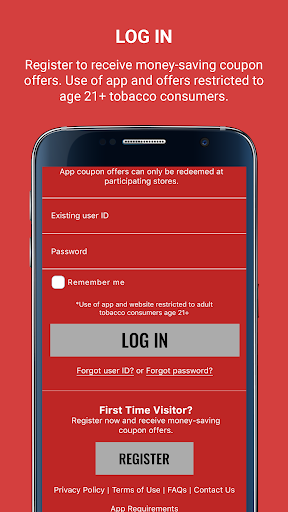 Use of app and offers restricted to tobacco consumers age 21 after successful completion of the age-verification process. Coupon offers can be redeemed at participating stores.