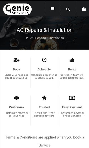 The genie app.lets you choose from a wide range of services you need , find verified professionals in your city