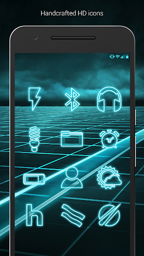 The Grid (Free Version) is a neon blue/teal theme with a focus on Sci-Fi aesthetics with digital 3D renderings of futuristic backgrounds. Glowing neon blue futuristic sci-fi Icons have transparency to blend in well with your backgrounds. Icons also feature a 3D looks and handmade designs. Custom wallpapers have variations in darkness for you to experiment with, or use your own backgrounds to create your own futuristic theme.