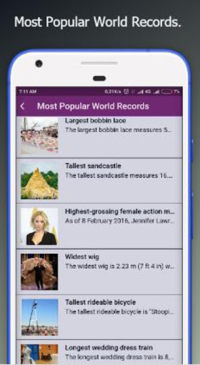 This application contains the information and images of the most incredible and surprising Facts about world Records and These facts can be related to any place, animal, past history, person, etc.