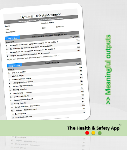 The Dynamic Risk Assessment Tool is designed to thoroughly look at your task to identify those things, situations, processes, etc. that may cause harm, particularly to people. After identification is made, you analyze and evaluate how likely and severe the risk is. When this determination is made, you can next, decide what measures should be in place to effectively eliminate or control the harm from happening.
