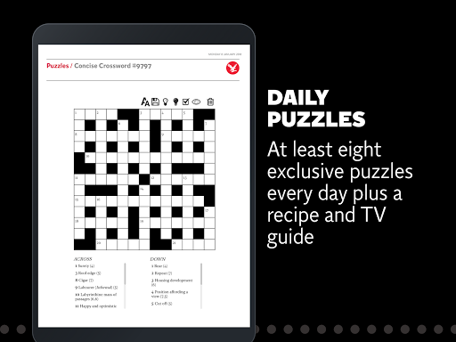 A useful app. I have set the app to download automatically to my tablet and phone. I normally read on the tablet but the phone is useful if I'm on the move. Only 4 stars as the puzzle software is a bit flaky and sometimes needs a reset to get it to work.
