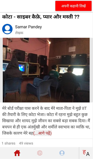 Write your own stories and personal experiences in Hindi or English. Also, read from a collection of personal stories shared by other people.