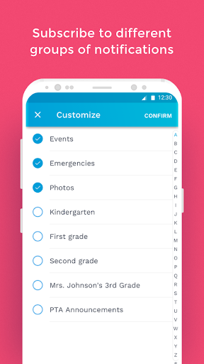 The A App allows you to stay connected with your school community by receiving information in categories you choose such as specific teachers, clubs, emergencies, sports, events, alerts, newsletters, grades and more.