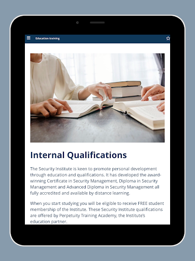 The app features a CPD toolkit which enables you to complete, edit and submit your Security Institute CPD on the go directly from the app. The smart CPD points calculator helps you keep track of your progress and enables you to quickly see when you have enough CPD points to submit your records.