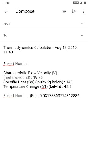 Thermodynamics Calculator contains 58 Calculators, Converters and References, that can quickly and easily calculate, convert and provide different Thermodynamics and Thermal Engineering parameters. Calculated values and results can be shared to social media, mail, messages and other sharing apps. Automatic & Accurate Calculations and Conversions with every value changes. A Complete Thermal Engineering Dictionary.
