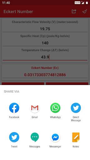 • Calculated values and results can be shared to social media, mail, messages and other sharing apps.
