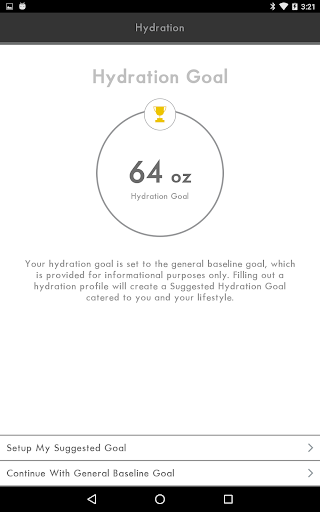 •Set a suggested daily hydration goal using the integrated hydration calculator