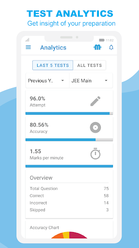 The app offers tests as per the new pattern recommended by National Testing Agency (NTA). It has the best questions for the test which is relevant to the concerned exam. The state of the art review system and result with SWOT analysis gives you a better insight of your preparation.