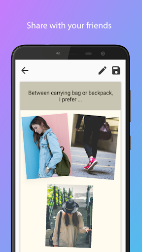 With this one you can import photos from the gallery and make your collages, add text with your most interesting themes or title your collages, you can also choose the background that you will have in your final image. Share with your friends and receive their comments and opinions.