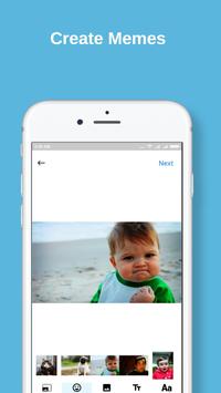 create Memes by importing pictures from their gallery. Options have been provided to Change color of text, font and also add pen name.