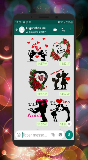 Di '(ti amo WAStickers) di Sticker qualcosa di bello e meraviglioso. Ma è vero che ci sono molti modi per esprimere il tuo amore tramite Sticker. Puoi farlo in modo semplice con un (Ti amo), (Ti adoro WAStickers), (Sono pazzo WAStickers / pazzo di te sticker) è veloce ma efficace e Frasi d'amore WAStickers Frasi San Valentino sticker.