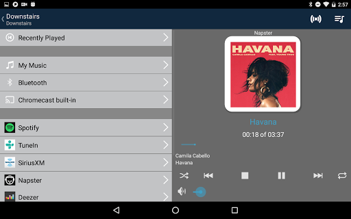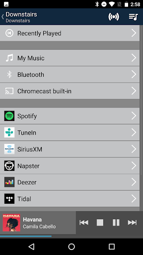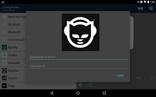 popular music services TuneIn, with in-app login for Napster, SiriusXM, Tidal, and Deezer.