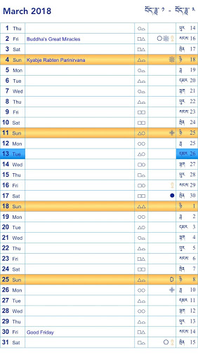 Tibetan Lunar Calendar