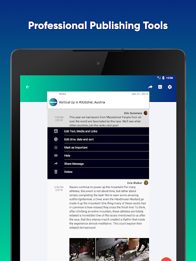 Using our mobile app, organizations can give a variety of on-site reporters and photographers access to a single live blog. This allows professionals to work concurrently: writing text, publishing photos and videos, integrating social media content, and even connecting with users.
