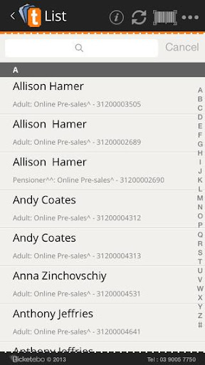 Your customer forgot their ticket? No problems, you can check in/out your customers using the app's alphabetical listing of your customers.