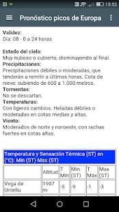 ■ Predicción de dos días para Picos de Europa, con información del estado del cielo, precipitaciones, tormentas, temperaturas y viento.