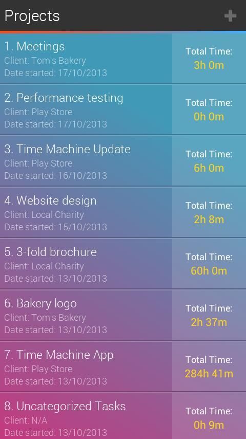 Time Machine is timesheet application for simple time tracking. Ideal for freelancers, and everyone who needs to track time spent working on their projects, control their time, or just want simple stopwatch. Beside stopwatch and time sheet work time tracker, it offers also project and client management with daily, weekly, and monthly work time statistics. This time tracker can also calculate earnings based on measured tame and hourly rate defined in project setup.