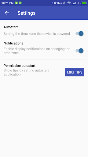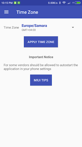 Application for the installation time zone when the device startup.