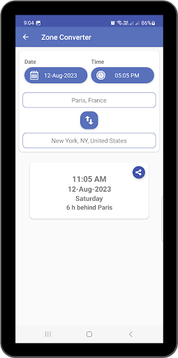 World time zones converter clock is a zone calculator, zone map app. Time Zone Converter help to search and add your desired time zones in the list. It also shows the relative time difference against each time zone regarding Eastern Standard Time, Greenwich Mean Time and Coordinated Universal Time which are commonly known as EST time, GMT time and UTC time respectively. So you can easily estimate GMT time, EST time now and UTC time now in the world. Time Zones Converter - World Clock Time Now App also have many useful tools and utilities such as Currency Converter to perform currency conversion of about 160 currencies, compass, speed meter, qibla direction and mileage calculator. Compass helps to search and find your direction and shows degrees from north. The speed meter is an awesome over speed checking tool. Speed meter show your current speed, average speed, maximum speed, time and distance traveled. Qibla direction helps you to find qibla direction from your location. Mileage calculator helps to calculate mileage, fuel consumption and distance travelled.