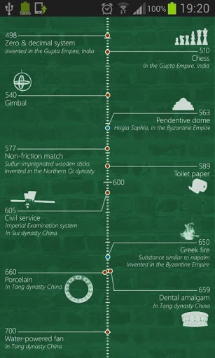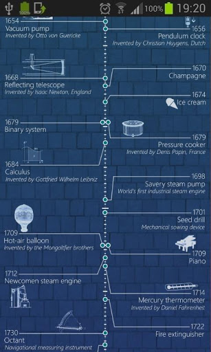 Rich and comprehensive overview of the history of inventions, enabling anyone to explore the gradual progress of humanity throughout the history in a swift, clean and coherent fashion.
