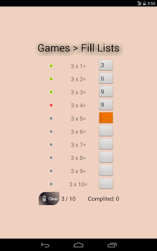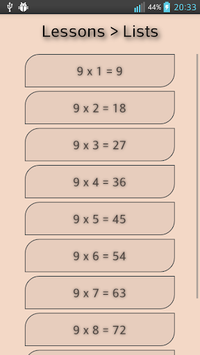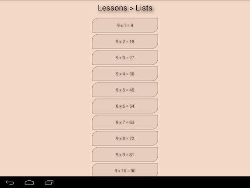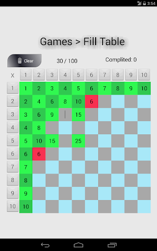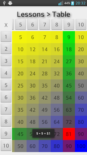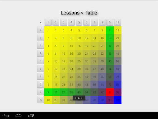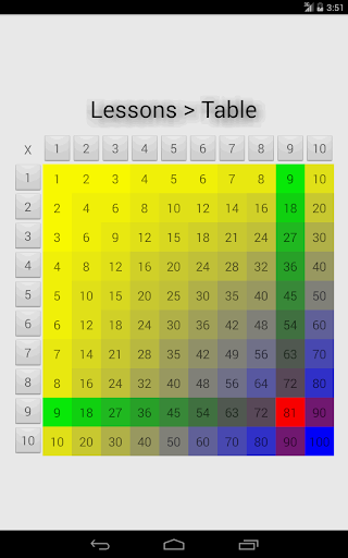 * Table -> learn the multiplication tables using a 10x10 array (NOTE: other apps do not offer this feature!)