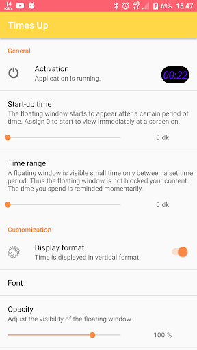 * You can alert yourself with specific time intervals. So the floating window does not prevent your content constantly. For example, the elapsed time is displayed at every five minutes.
