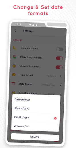 • On/Off toggle available to Set theme, Location, or to show milliseconds