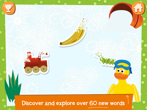 • In Rub-a-Dub, your child will swipe away feathers, buttons or paint to identify objects hidden beneath. They start with single objects and build up to more complex phrases as they advance.