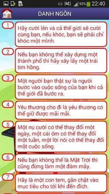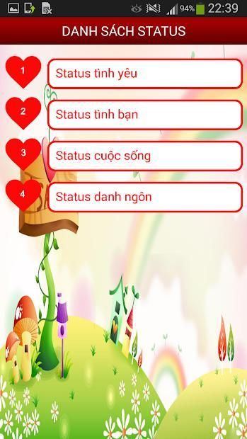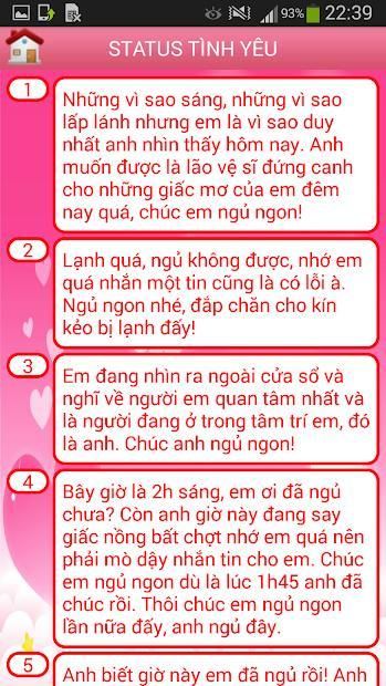 Ứng dụng bao gồm nhiều tin nhắn và status hay về: