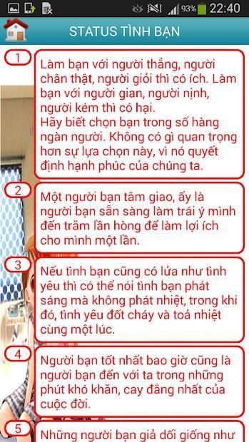 Nhiều tin nhắn - status cho bạn thoái mái lựa chọn. Điểm nổi bật nữa là Ứng dụng hộ trợ các bạn tính năng: