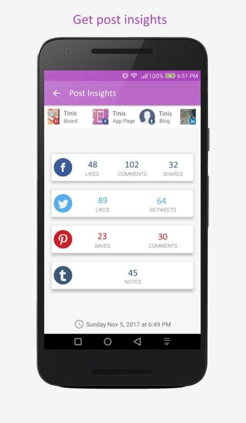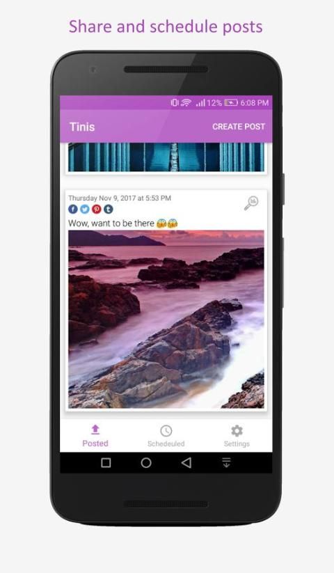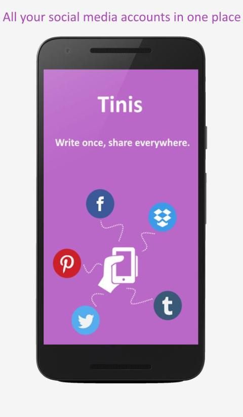 Tinis helps you to manage your social media accounts from one app. Just connect your social accounts and start posting and scheduling content to multiple social networks like Facebook, Twitter, Pinterest, Tumblr & more!