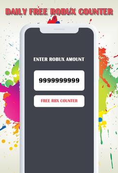- Daily free robux counter: this option make all roblox fans able to count&calculate their daily for robux of their membership, what make you count your free rbx earnings from builders club, turbo builders club or even the outrageous builders club. And know how much free robux you can get everyday using this simple R$ tool.