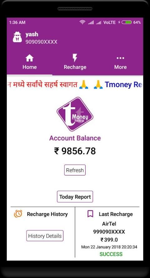 Tmoney Recharge is a company specializes in Mobile, Data Card and DTH recharge technologies. Tmoney Recharge is India's first 24/7 recharge platform that provides recharge facilities of all the telecom service providers, Data Card and DTH operators through the Internet and Mobile channels. It is amongst the Top three privately owned, operator independent, neutral recharge website servicing more than a thousand plus registered mobile customers.