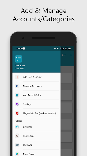 • Information about the next scheduled reminder will stick on Status Bar, you can disable it from settings screen.