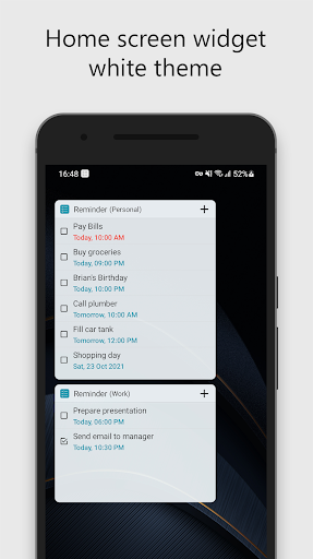 To Do List Reminder is a smart task list for everyday use, it contains a beautiful home screen widget for upcoming tasks.