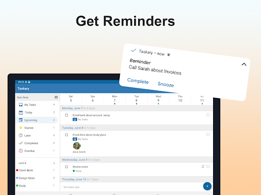 • Syncs with Google Tasks, access your tasks on the web in Gmail or Calendar