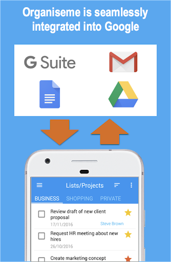 Organiseme is a to-do list / task management app that helps you getting things done - for individuals and teams. It has a smart shopping list feature that remembers your shopping items - so you can quickly prepare your shopping list by selecting from your favorites. Its Google-like layout and integration with the Google G suite makes it perfect for Google users.