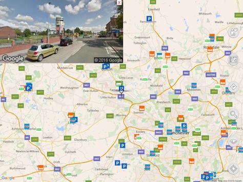 Hold - Show/hide Street view area of map (where available). Move map or tap right / left to reposition view
