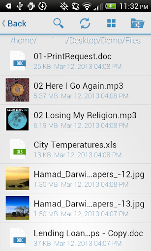 You can instantly open files, folders, pictures or videos that are stored on your computer from your Android device with just one click. No uploading to a public online services, No storage limits, No security and privacy worries. Tonido makes it easy to work directly with your computer files, no matter where you are.