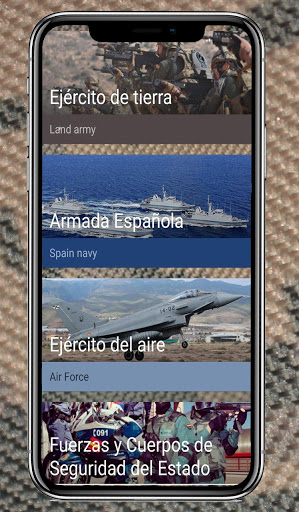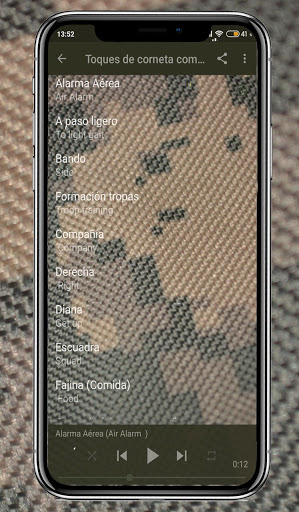 Puedes escuchar todos los toques de cornetas utilizados en el ejército Español, alarma general, orden diana, alarma aérea, y muchas más, así como los himnos comunes de los distintos ejércitos, Tierra, mar y aire, marchas, canciones patrióticas de España como: “la campanera y contra, la cirila, de la división azul, la canción de los guerrilleros, el novio de la muerte, entre otros.